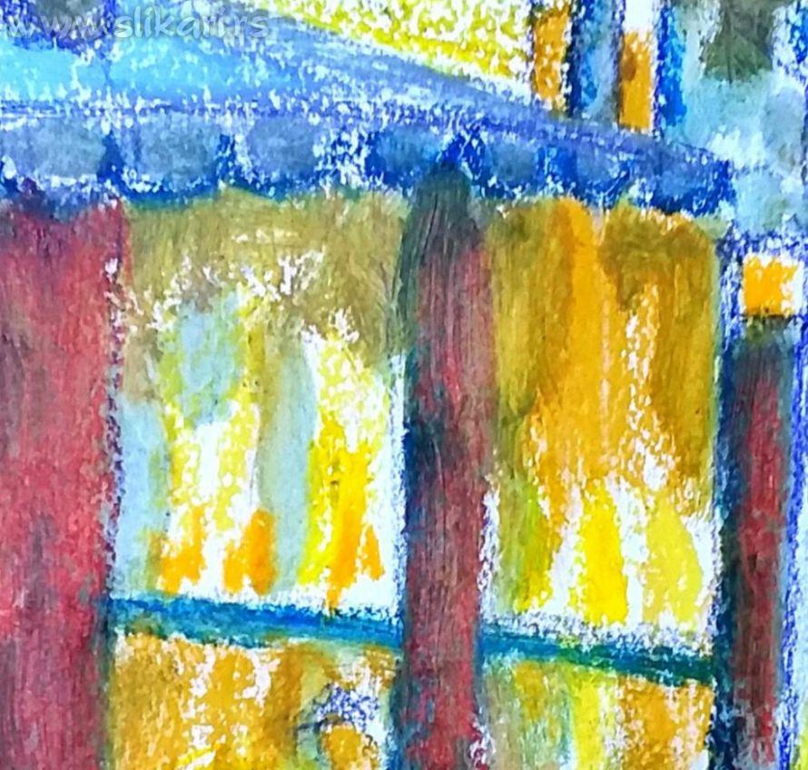 Naziv: Kafić predveče deatalj"a" Tehnika: Pastel Dimenzije: 10x10 cm Godina izrade: 2025 Datum postavljanja: 11.8.2025.