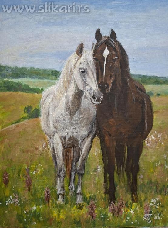 Naziv: Razigrani konji Tehnika: Akril na platnu Dimenzije: 40x60 cm Godina izrade: 2025 Datum postavljanja: 27.3.2026.