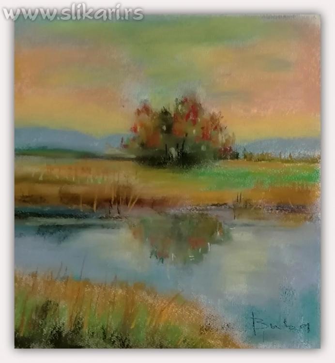 Naziv: Suton na Savi Tehnika: pastel na pastel kartonu Dimenzije: 30 x 20 cm Godina izrade: 2021