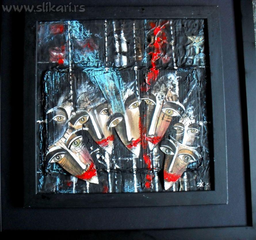 Tehnika: Kombinovana/lavirani tus, akrilik, kolaz /