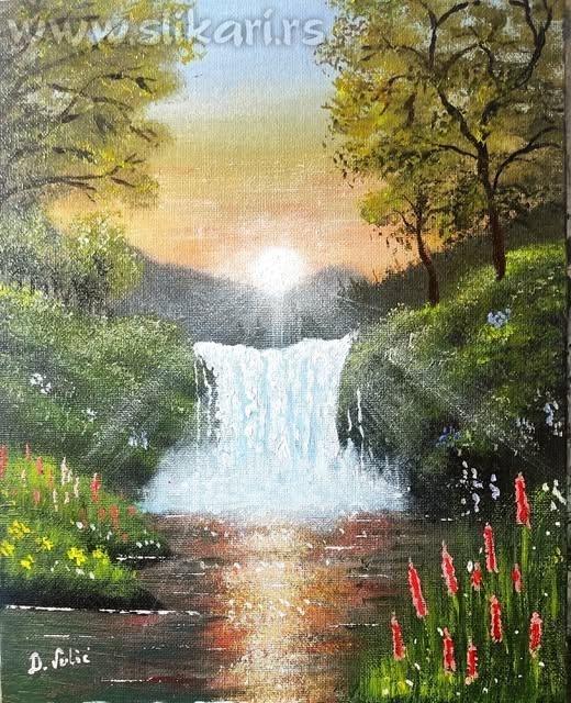 Naziv: Vodopad 3 Tehnika: akril na kaširanom platnu Dimenzije: 24x30 cm Godina izrade: 2026